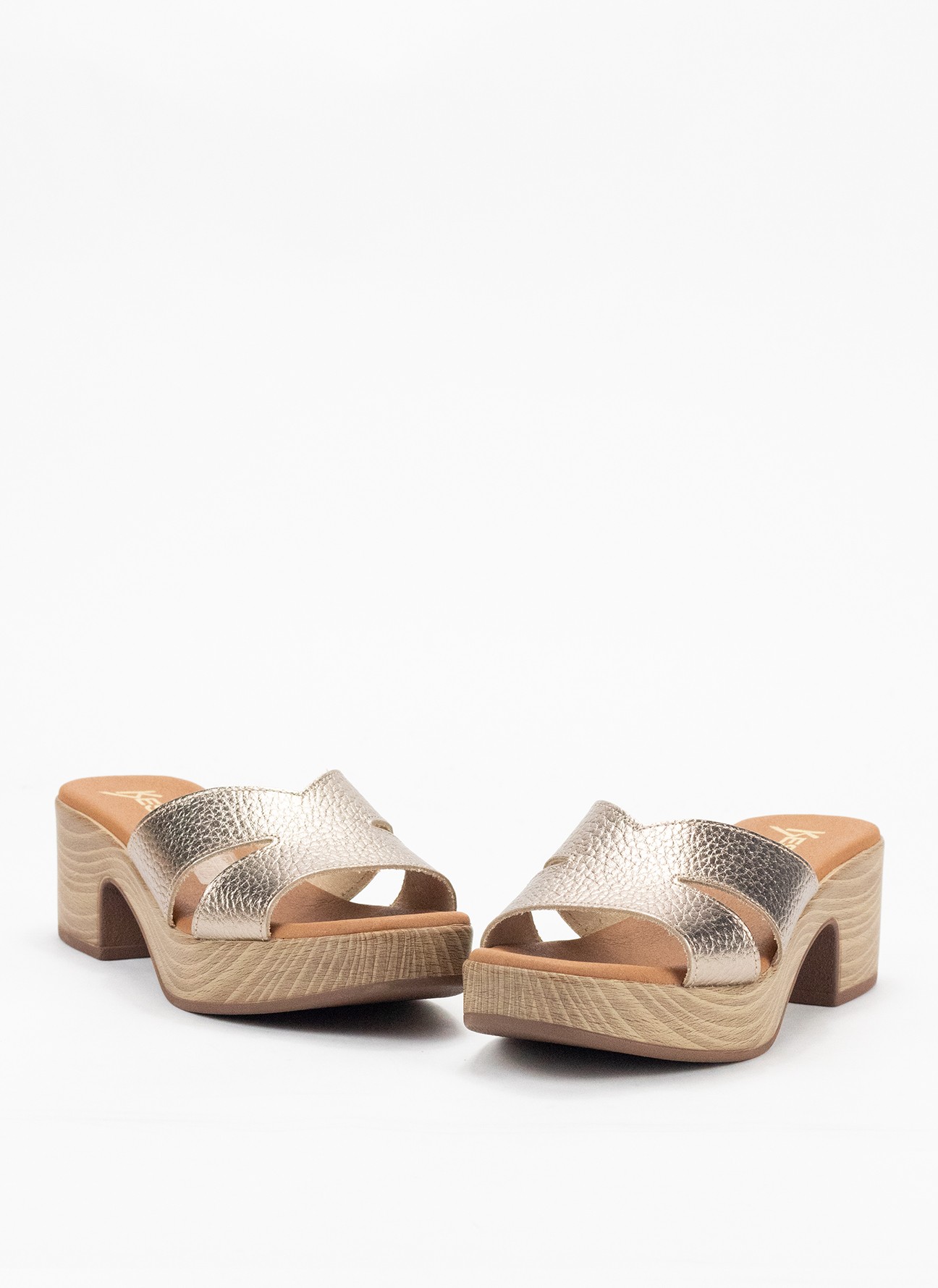 Zueco de Piel con Tacón para Mujer en Color Oro