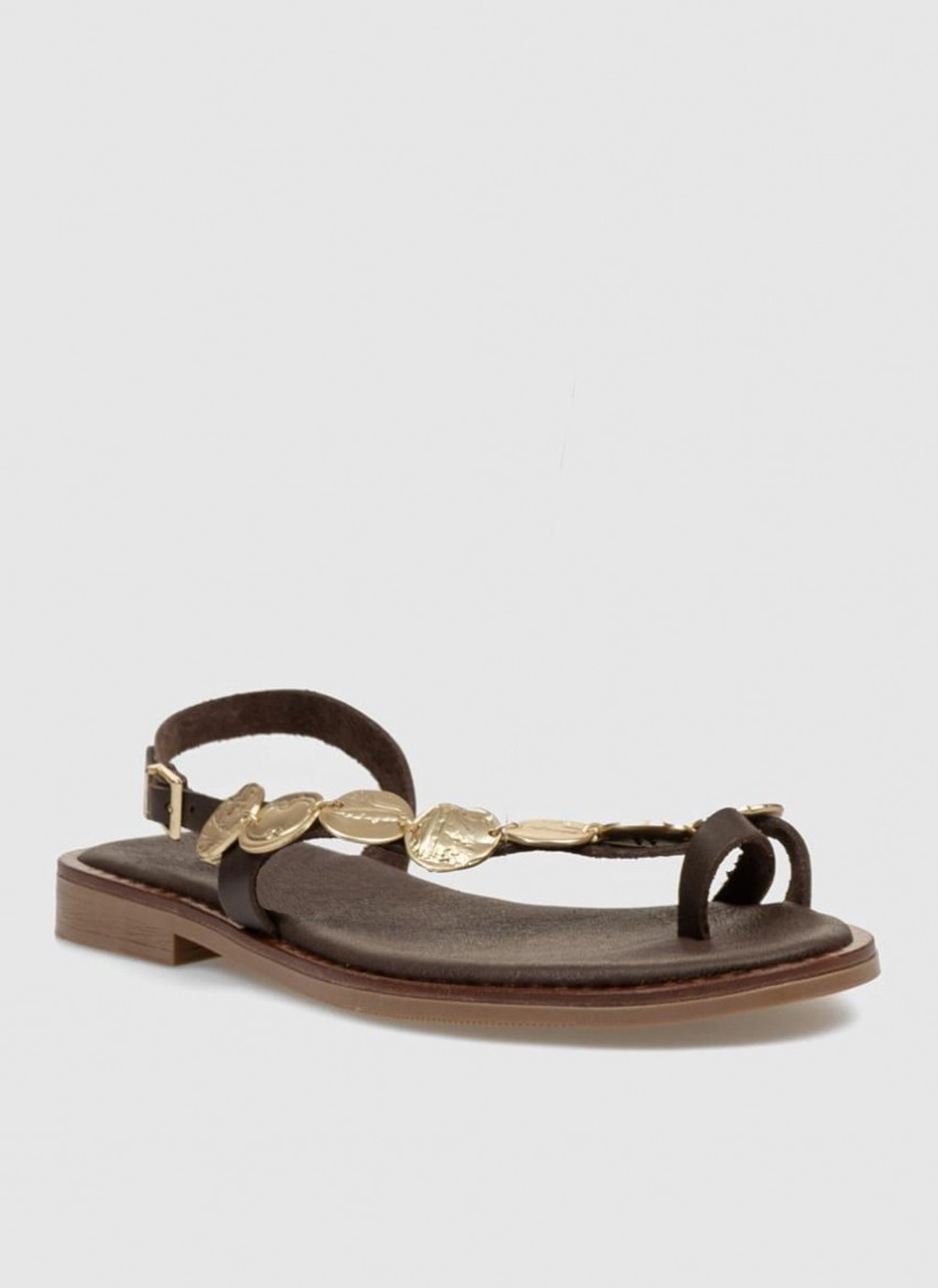 Sandalia para Mujer en Color Marrón con Detalles Dorados