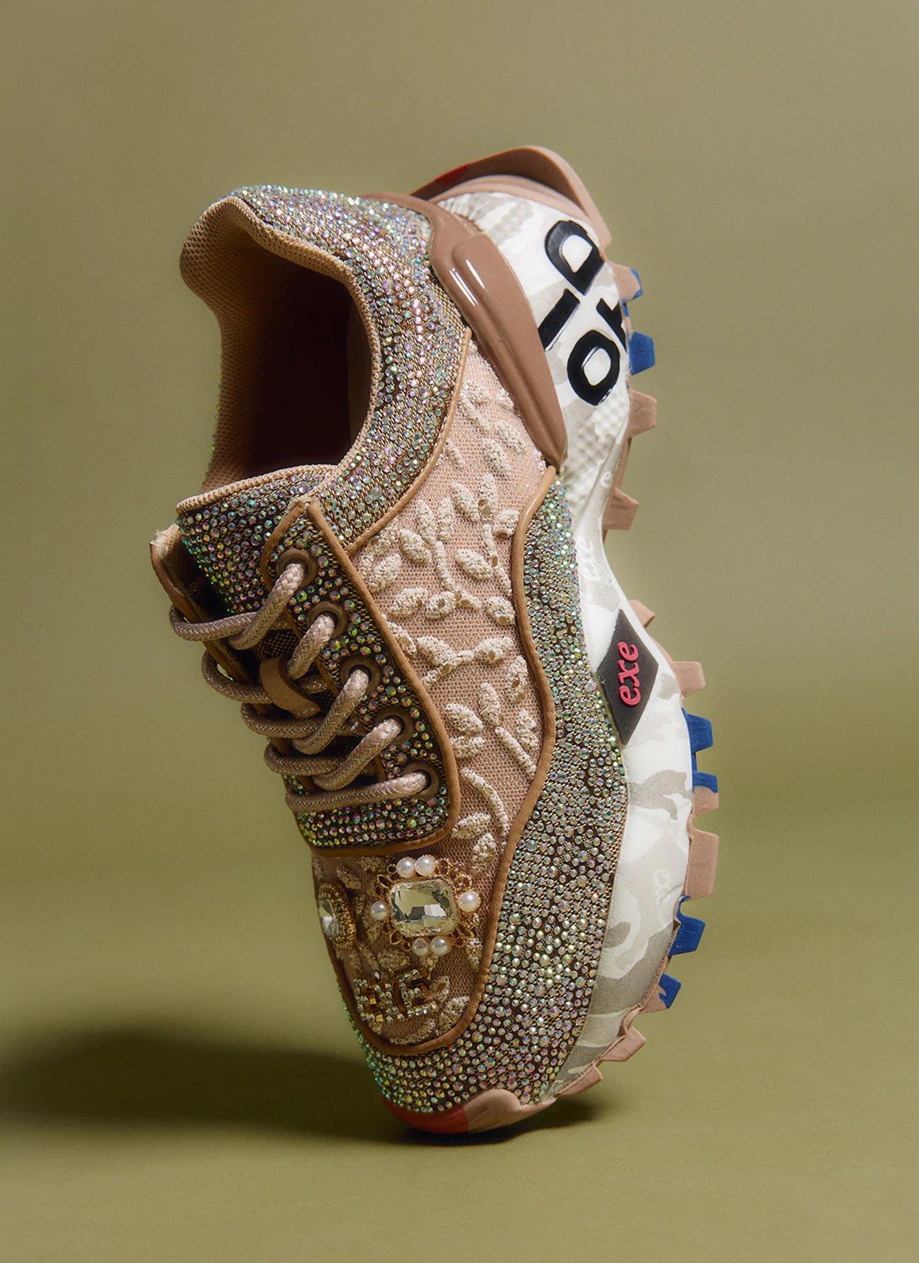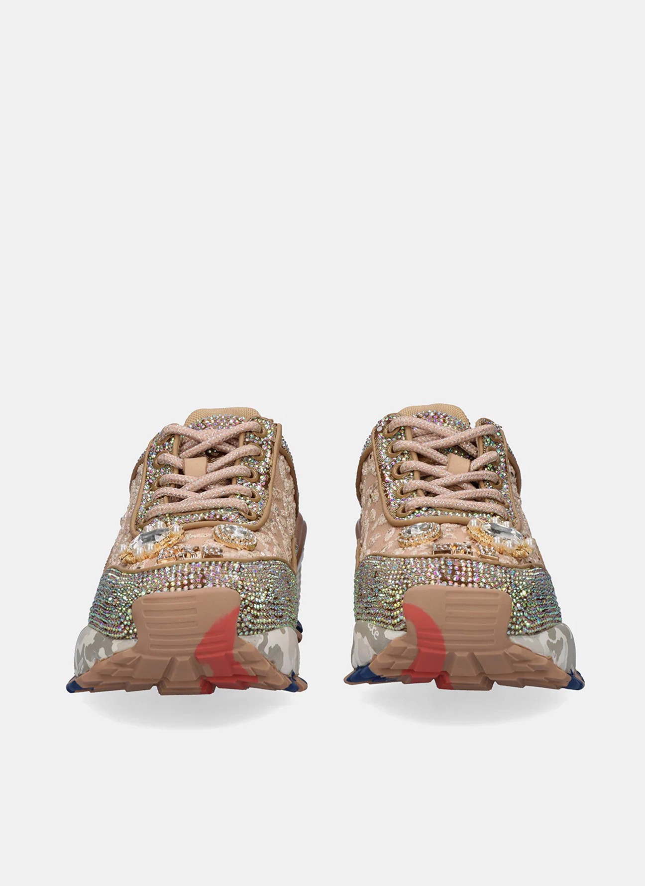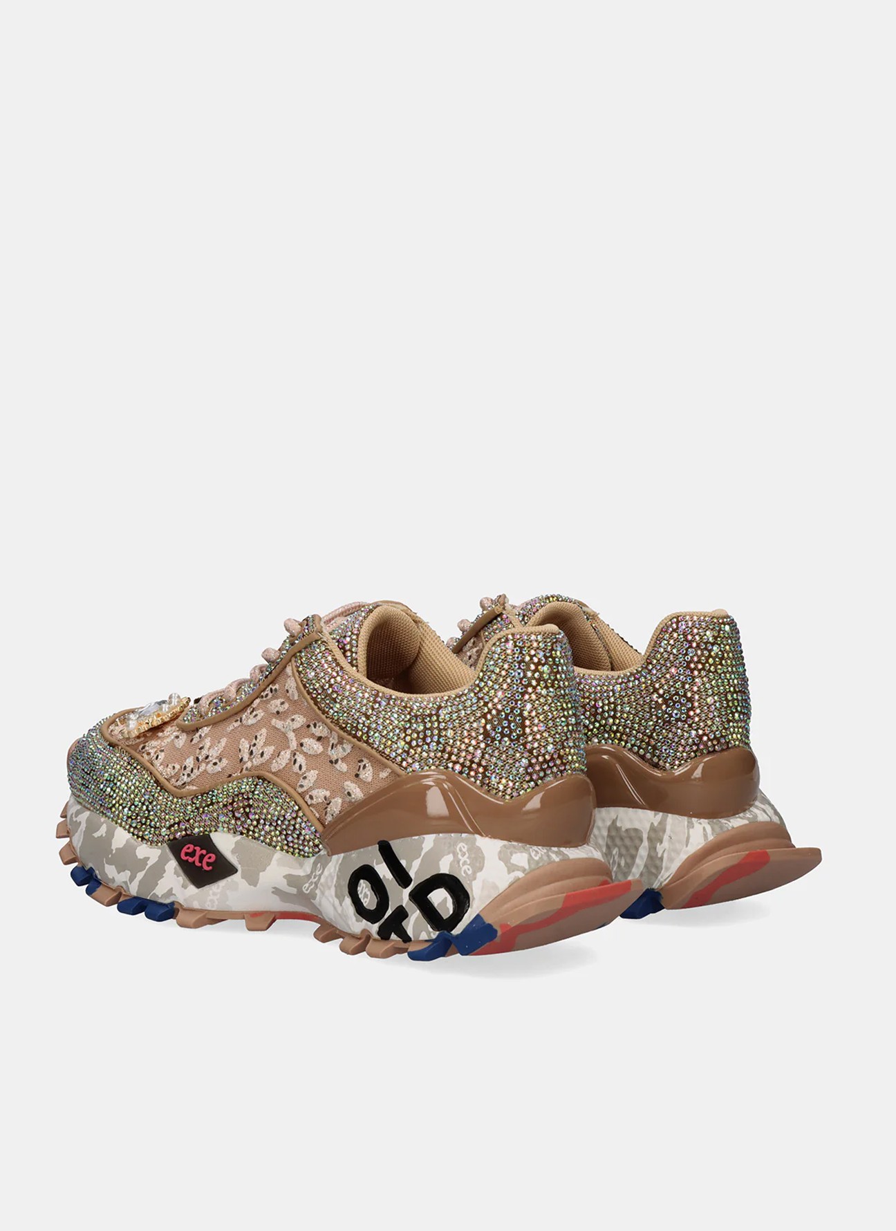 El diseño mezcla texturas con malla bordada y aplicaciones joya que capturan la luz en cada paso. La suela de 4 cm añade altura y carácter gracias a su acabado chunky con contraste gráfico, proporcionando estabilidad y un aire urbano muy actual. Con corte y plantilla de cuero, ofrecen una sensación confortable durante todo el día, mientras que el cierre con cordones asegura un ajuste perfecto.