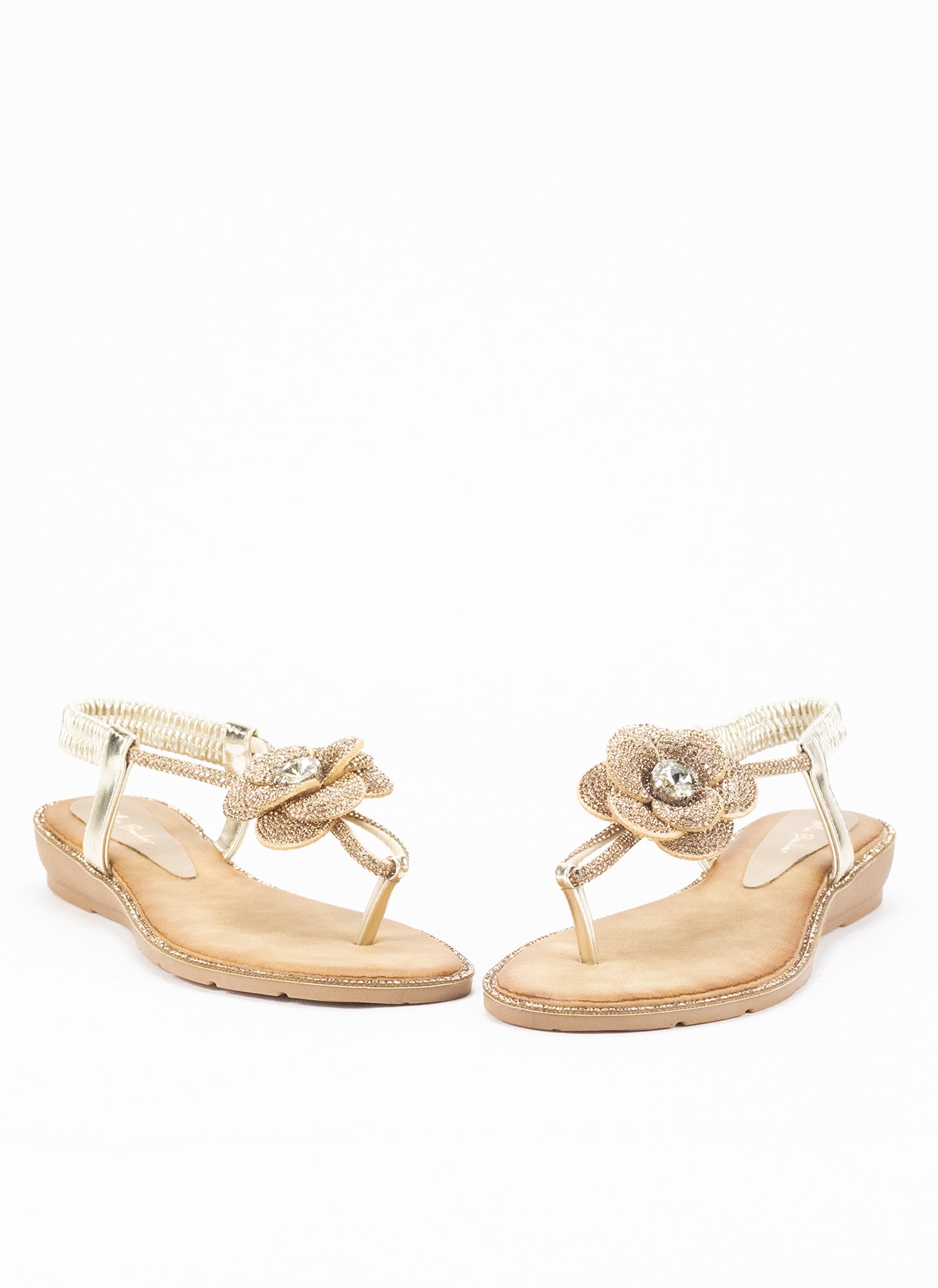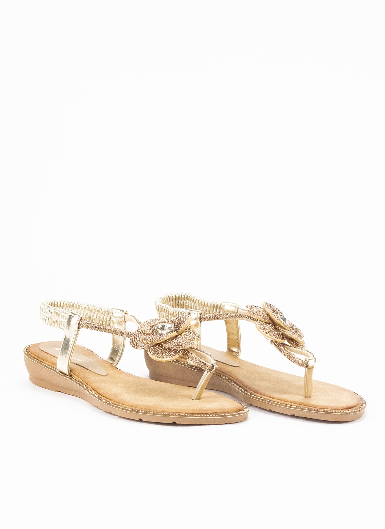 Sandalia con cuña para mujer modelo HL-S061en color oro, ideal para un look cómodo y moderno. Fabricada en material textil, ofrece una sensación ligera y fresca, perfecta para el uso diario en climas cálidos.