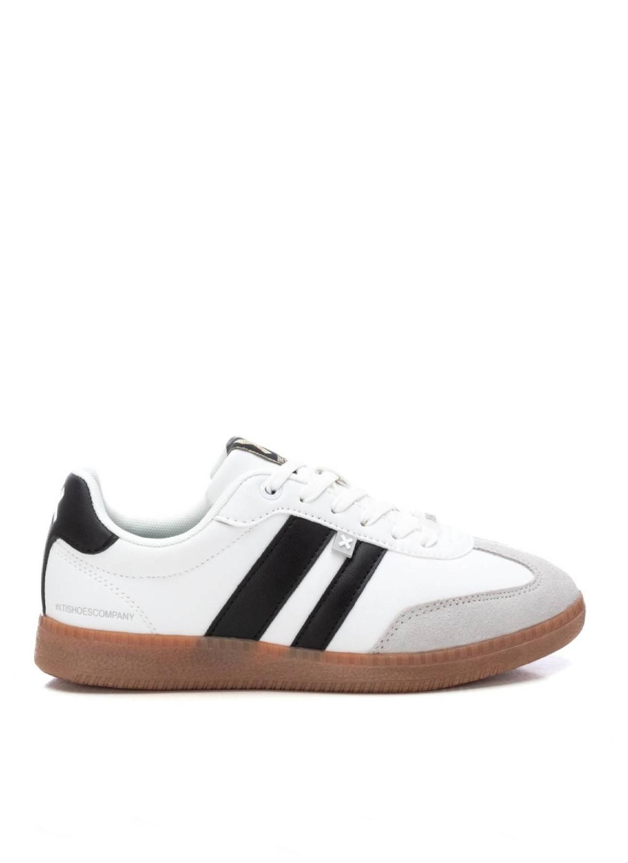 Zapatilla de mujer de la marca Xti, fabricada en material que imita la piel, con bandas laterales que añaden un toque moderno y deportivo. Cuenta con cordones para un ajuste personalizado y suela plana antideslizante...