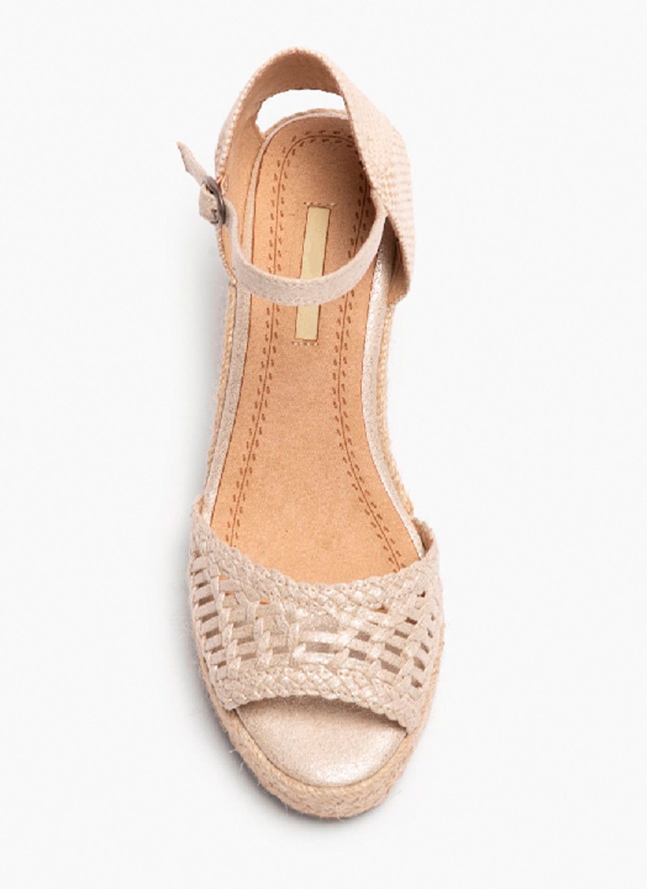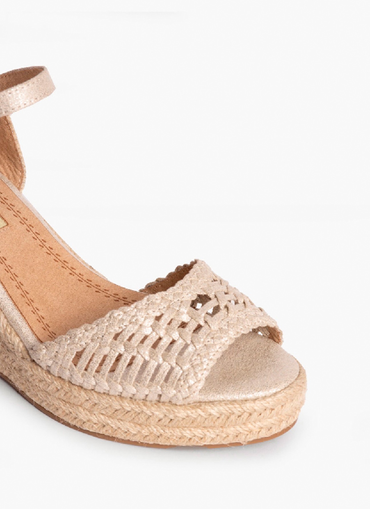 Sandale en Cuir avec Semelle Compensée pour Femme en Couleur Or Sandale en Cuir avec Semelle Compensée pour Femme en Couleur Or