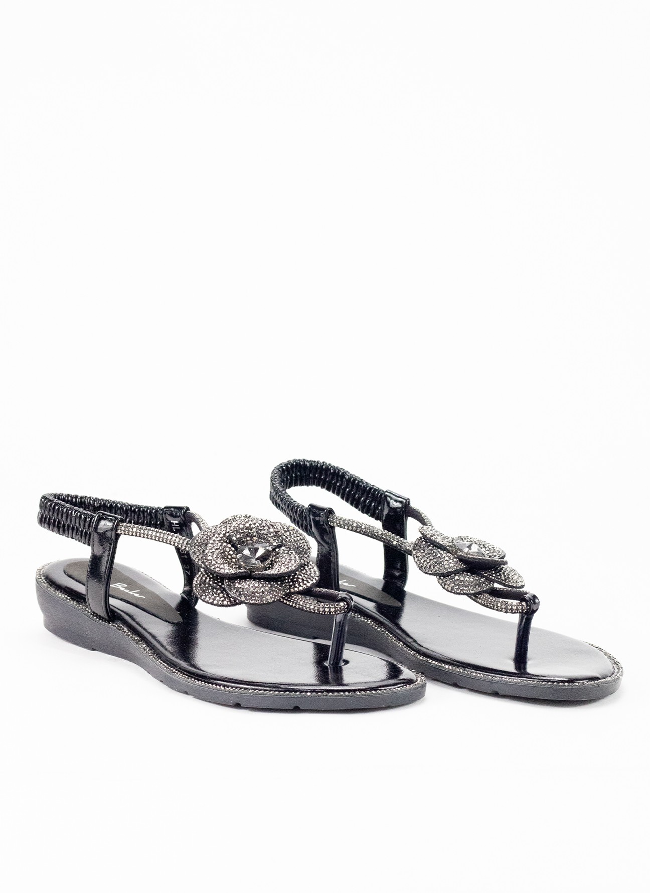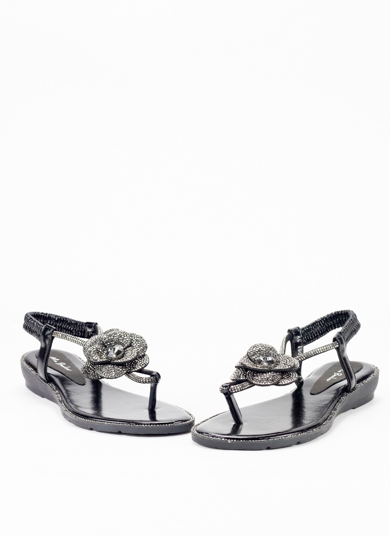 Sandalia con cuña para mujer modelo HL-S061en color negro, ideal para un look cómodo y moderno. Fabricada en material textil, ofrece una sensación ligera y fresca, perfecta para el uso diario en climas cálidos.