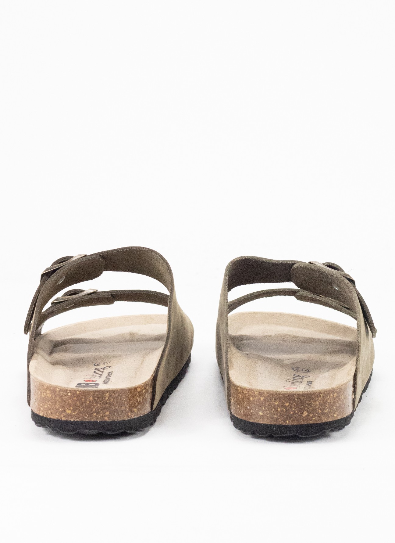 Fabricada en piel en tono kaki, ofrece una textura suave y un acabado elegante. Su planta bio se adapta a la forma del pie para brindar mayor soporte y bienestar, mientras que el piso de 2 cm asegura una pisada firme y cómoda.