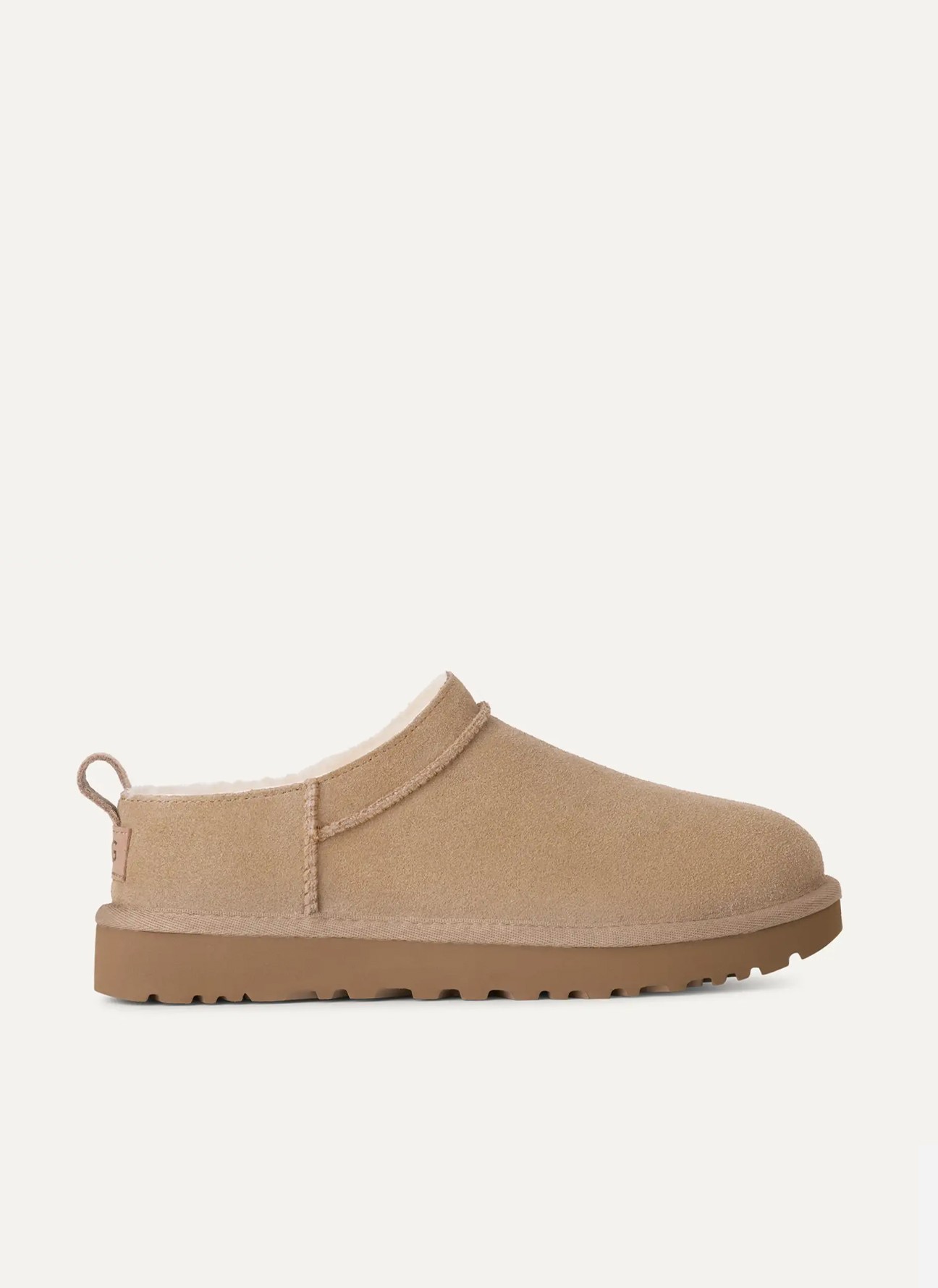 El zueco Ugg Classic Micro en color taupe combina el icónico diseño de UGG con un aire moderno y versátil. Fabricado en suave ante de alta calidad y forrado con lana UGGplush™, ofrece una calidez y confort excepcionales. Su perfil bajo y suela ligera proporcionan una pisada cómoda y un estilo actual, ideal para looks casuales o relajados. Un básico elegante que une moda, funcionalidad y el inconfundible confort de UGG.