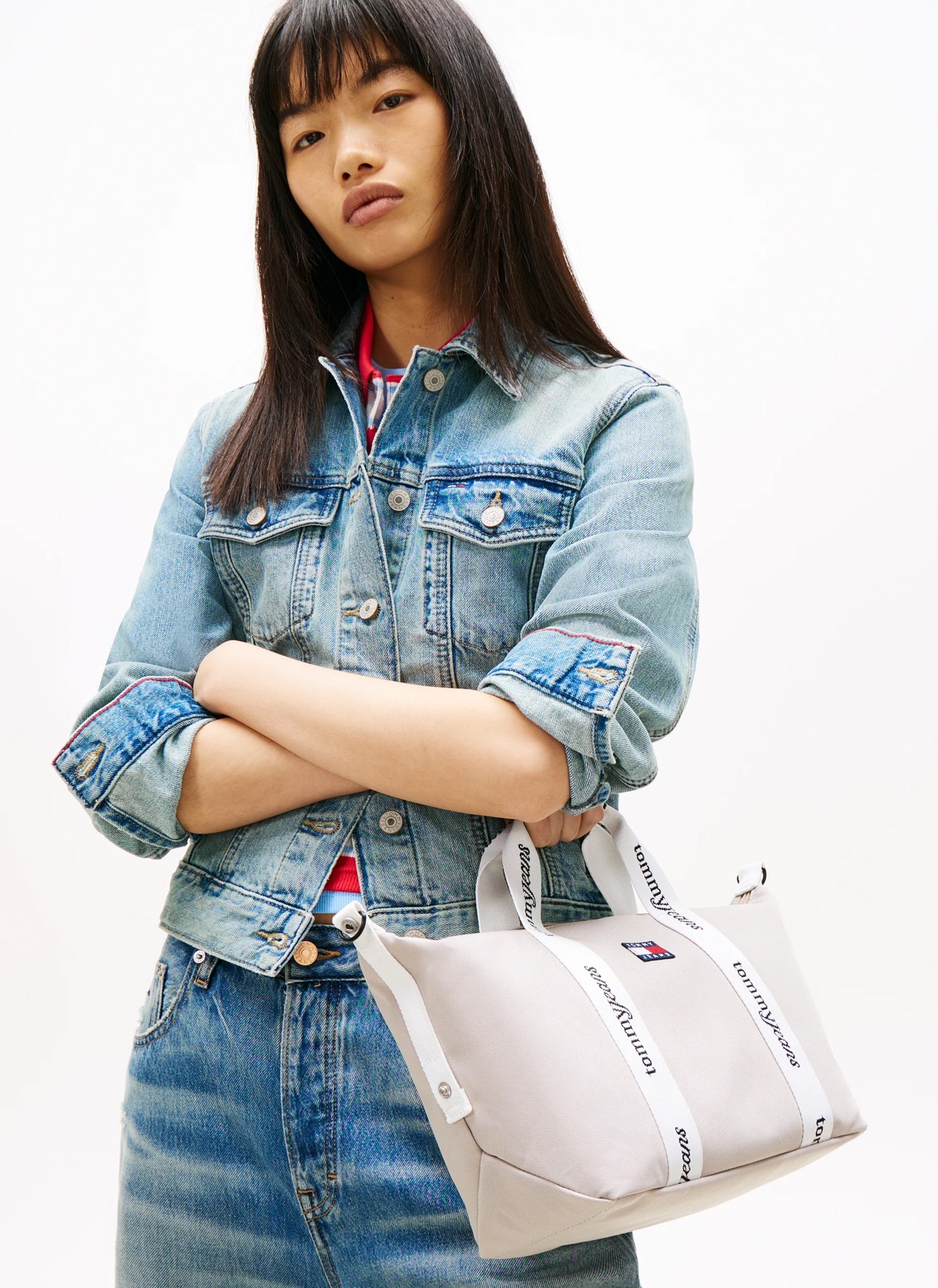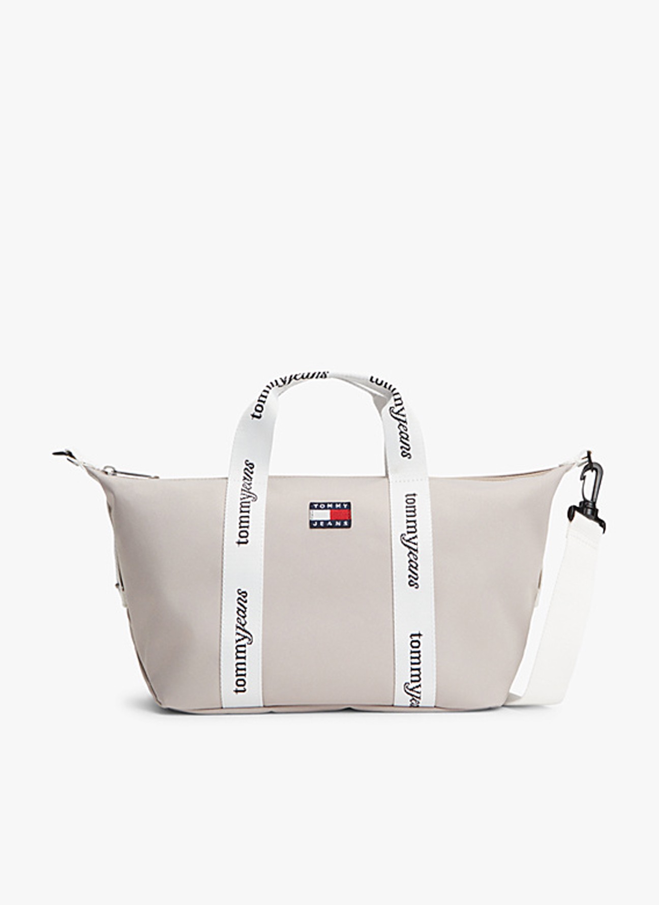 Pensado para acompañar tus looks de fin de semana, este bolso tote combina un diseño funcional con el estilo inconfundible de la marca. Está confeccionado en tejido resistente y ligero, e incorpora cierre de cremallera para mayor seguridad. Las asas superiores con la inscripción Tommy Jeans se prolongan por los laterales, aportando un toque distintivo y contemporáneo, mientras que la bandolera tejida extraíble permite llevarlo cómodamente al hombro o cruzado.