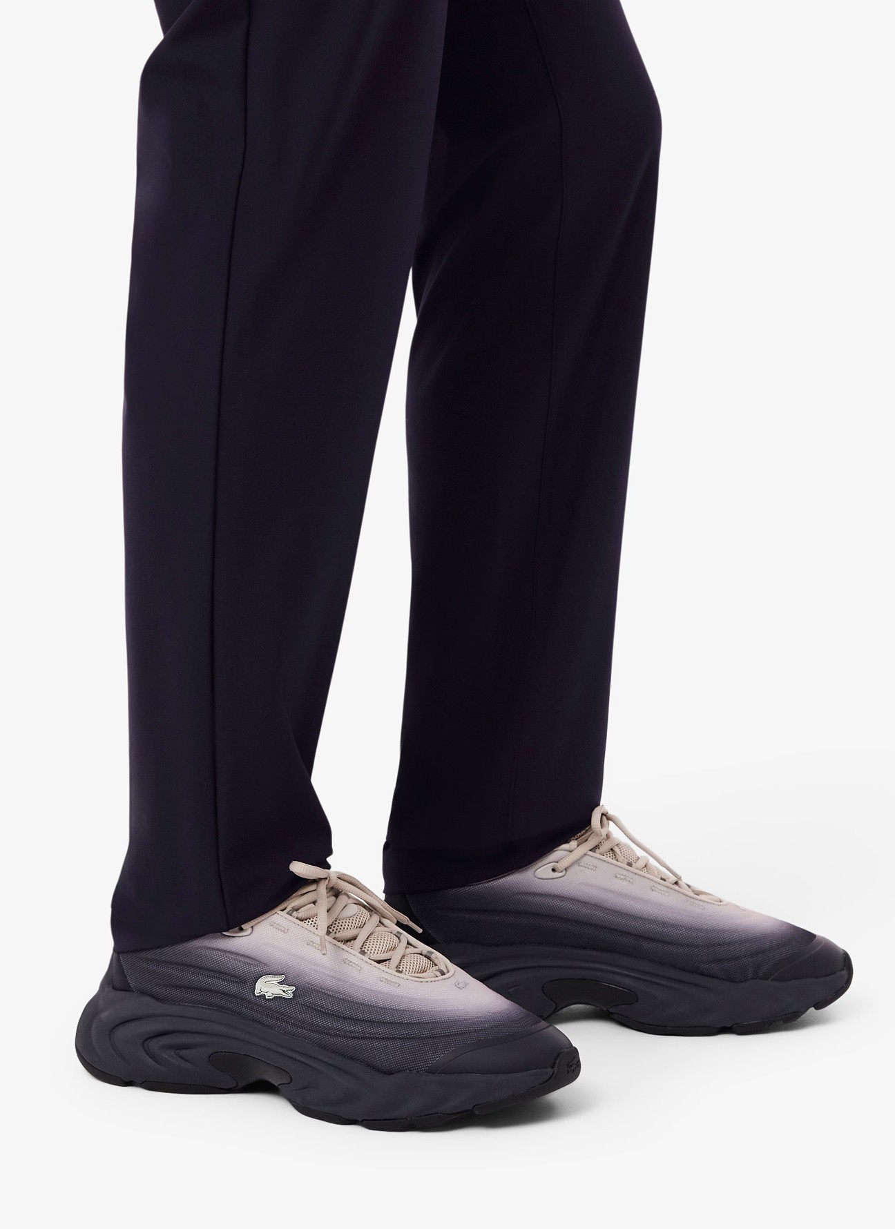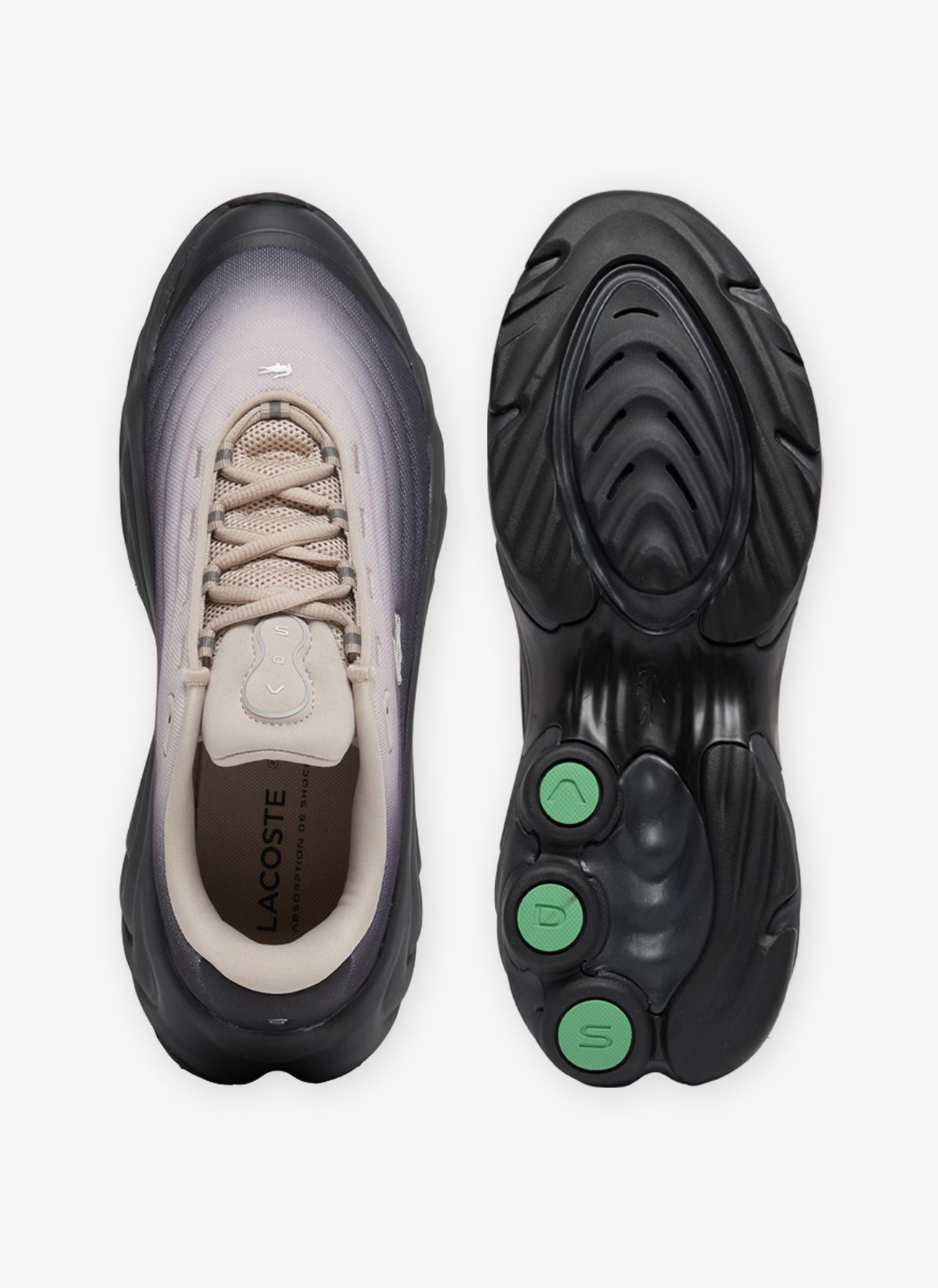 Las zapatillas Spinor de Lacoste reinterpretan el calzado deportivo con una estética futurista inspirada en las olas gravitacionales que genera un cocodrilo sobre la superficie del agua. Su diseño dinámico y envolvente se combina con la innovadora tecnología A.D.S. de absorción de impactos, creada para ofrecer una amortiguación superior y una comodidad excepcional durante todo el día.