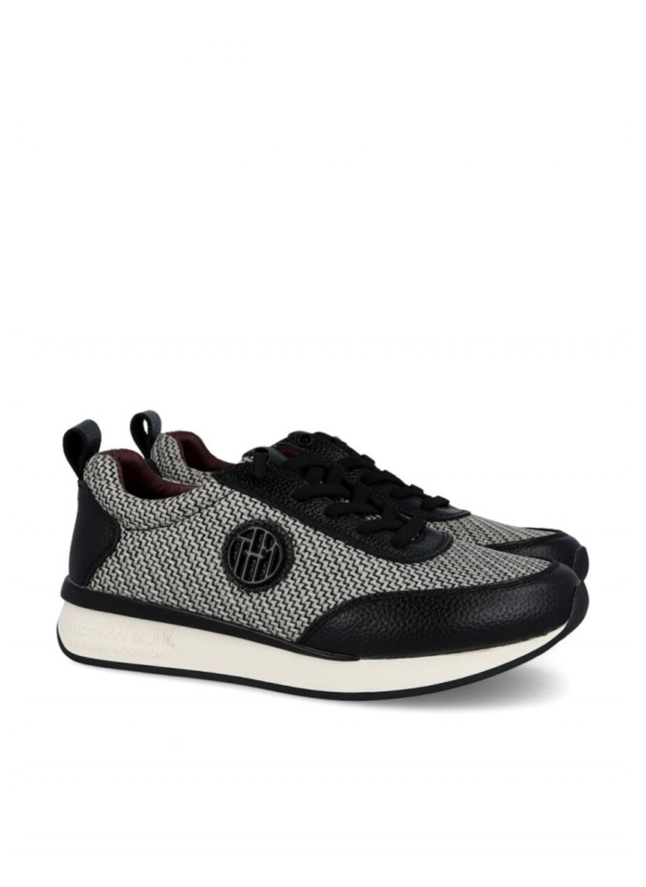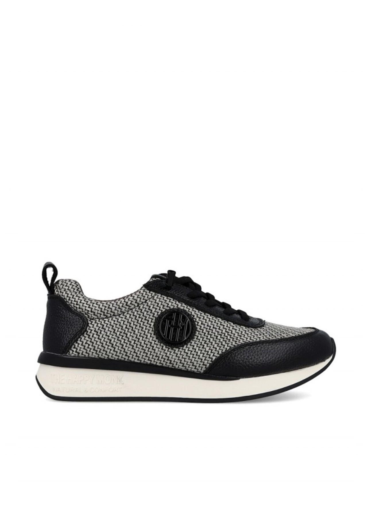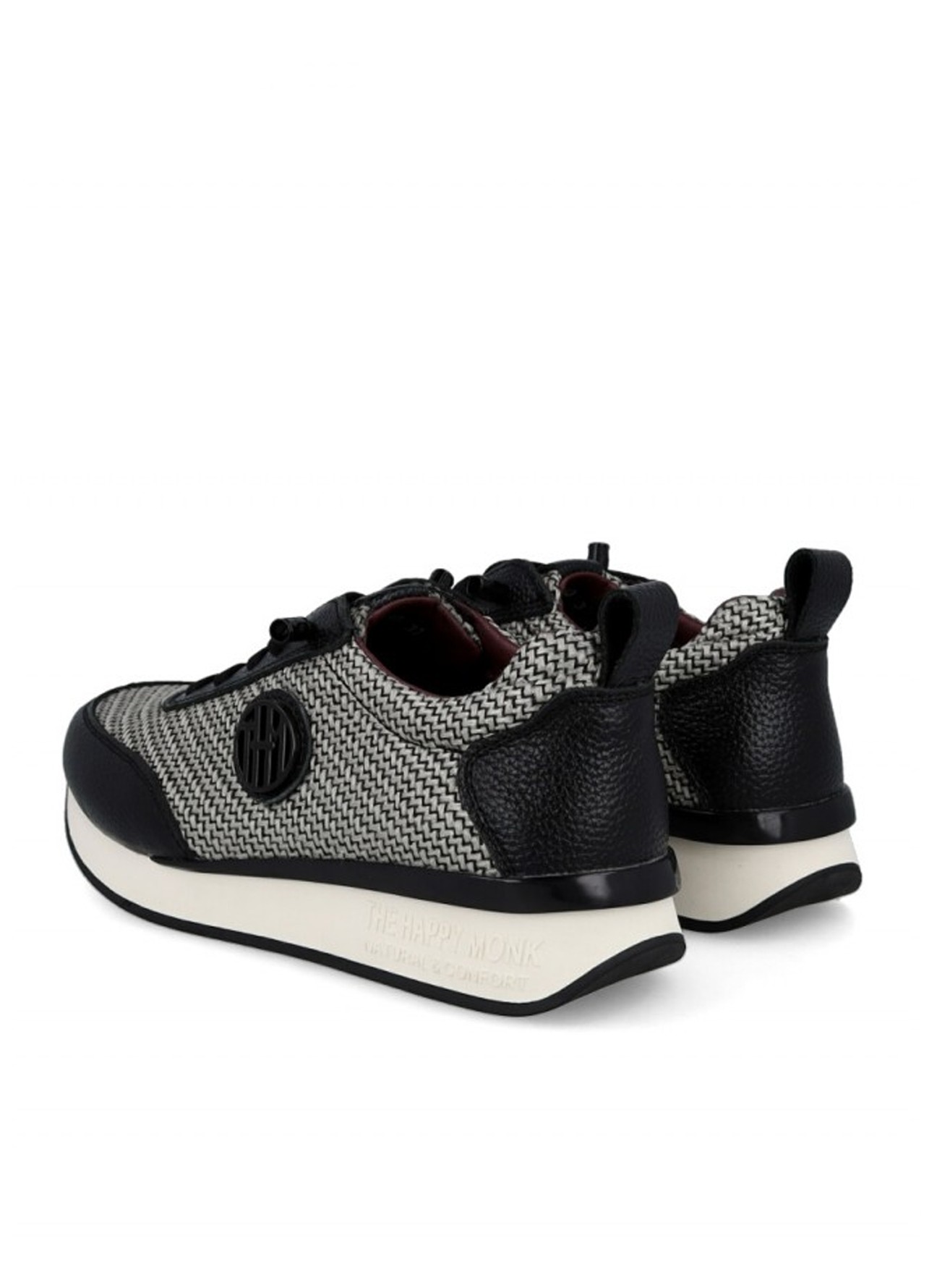 Zapatilla THE HAPPY MONK en color piel espiga negro para mujer