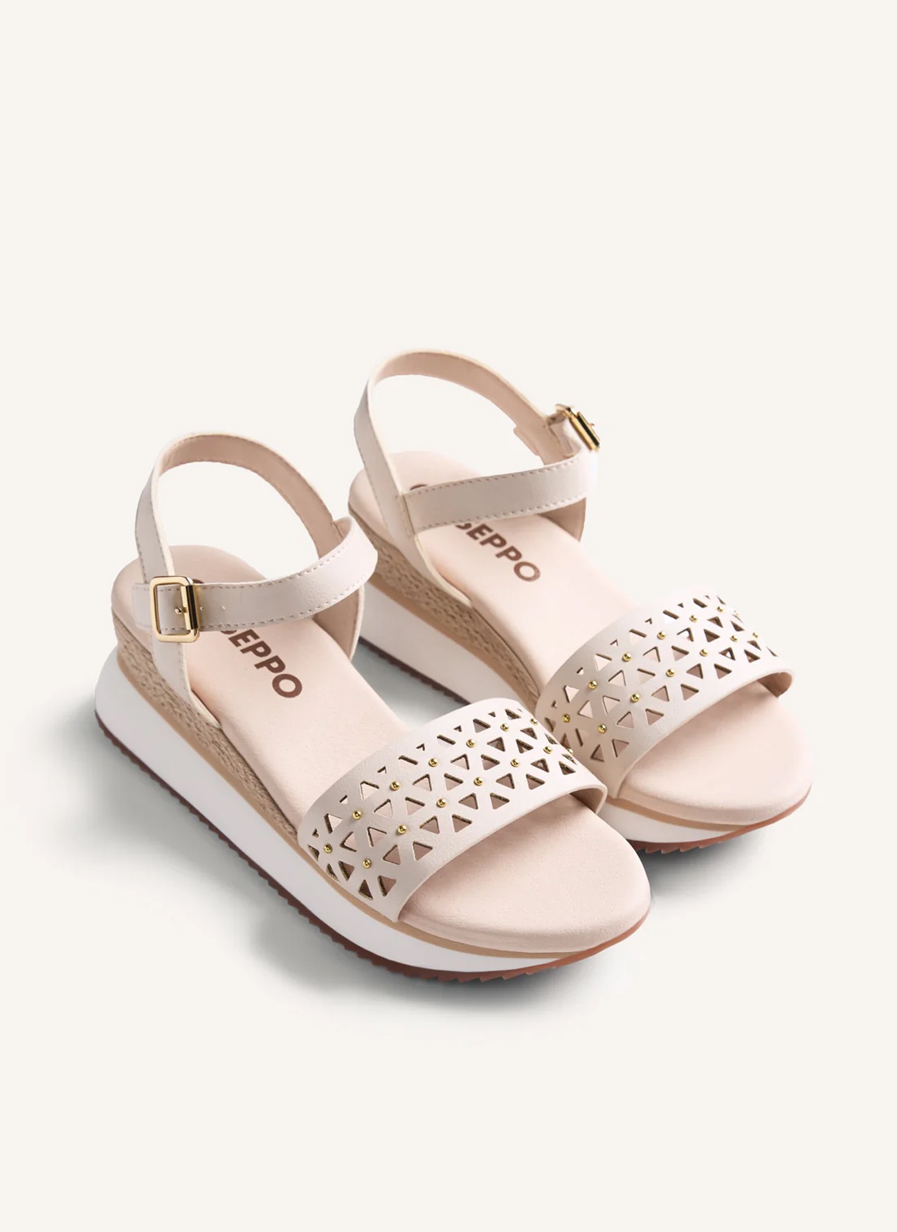 Las sandalias de Gioseppo destacan por su diseño delicado y versátil, con un elegante calado geométrico en la pala que aporta ligereza visual y un sutil juego de transparencias. El detalle de pequeñas tachas metálicas añade un toque sofisticado que realza su acabado, convirtiéndolas en una opción perfecta para elevar cualquier look veraniego.