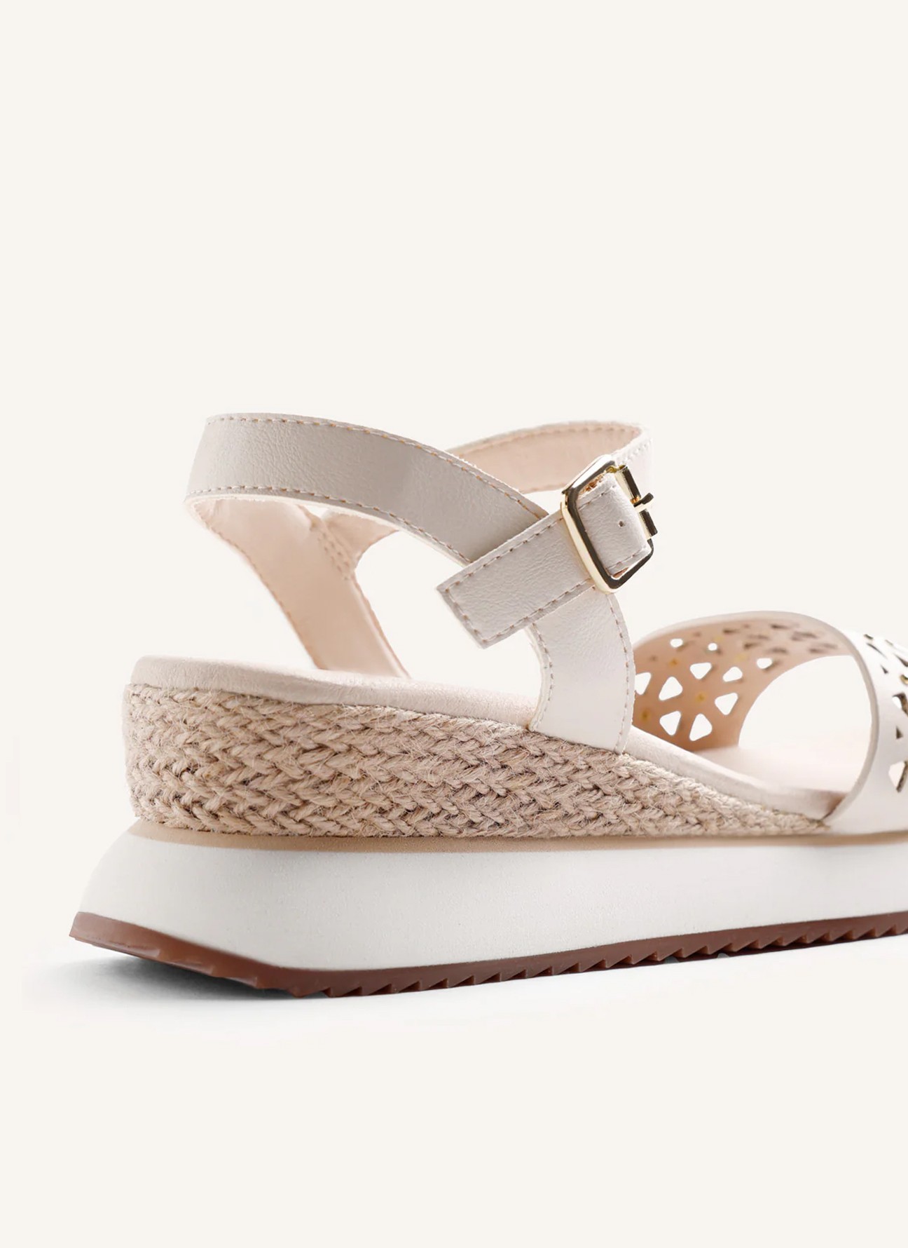 Incorporan una cómoda planta acolchada que favorece la pisada y garantiza confort durante todo el día. La cuña de 5 cm, forrada en estilo rafia, refuerza su estética natural y proporciona una ligera elevación sin renunciar a la estabilidad. Los cierres ajustables en el tobillo permiten adaptar el ajuste para una sujeción segura y personalizada.